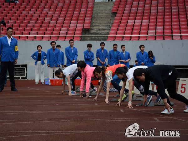 紧接着便是教工组的比赛。首先进行的是教工男子100米比赛,教工运动员走向赛场的那一刻,全场又掀起了一次高潮。接着便是教工女子100米比赛,箭一般的速度昭示着她们的激情。与此同时进行的还有教工男子立定跳远项目、教工男子铅球项目、教工女子立定跳远项目、教工女子铅球项目。看着对自己谆谆训诫的老师和公司领导们,每一位同学都毫不吝惜的送上了自己的掌声。