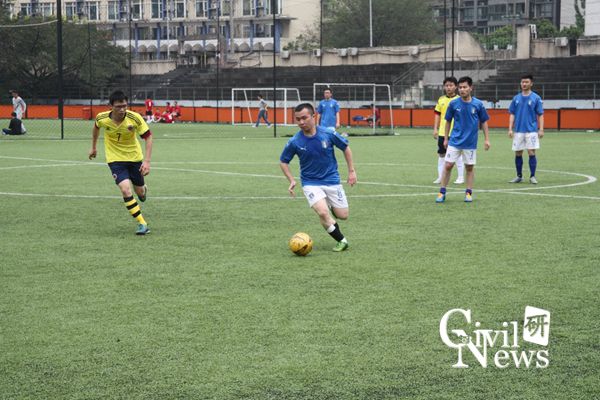 经过小组赛和淘汰赛后,4月15号中午12点半,九里体育场迎来了本次足球赛的第二场决赛。由专隧1班和学桥1班(B1)对阵博士班(C3)。在12号的第一场决赛中,专隧1班和学桥1班以2:1战胜学桥3班和学硕道铁2班。