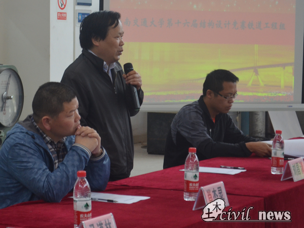 上午8点钟,决赛开幕式正式开始。出席本次开幕式的人员分别是马道林、肖杰灵、刘昌清和赵坪锐老师,其中,赵坪锐老师还是本次铁道工程组的命题老师。他表示,这次的题目在近几年的赛题中可以说是最难的了,看到有那么多同学积极地参加此次比赛,他倍感欣慰,并诚挚地祝贺大家取得成功。