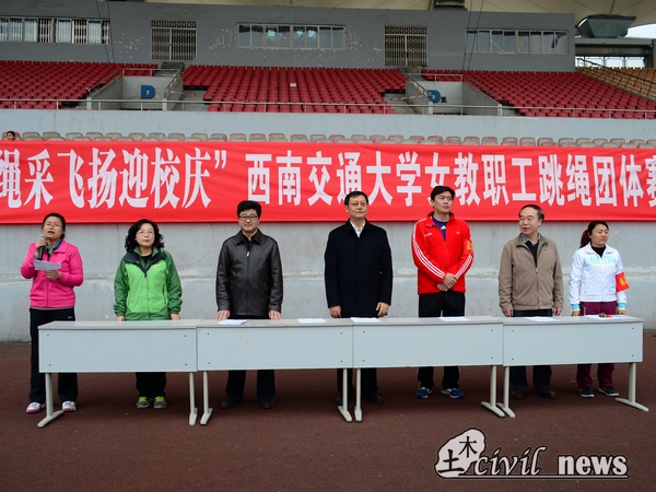 2016年3月8日,妇女节来临之际,公司举办了主题为“绳采飞扬迎校庆”的女职工跳绳团体赛。与会的嘉宾有新葡的京集团35222vip党委副书记陈志坚,校工会主席罗乾超,副主席郑江、盛鹏,体育部副主任及副总裁判长曾秀君。出席此次活动的还有各部门工会主席、各参赛队领队及运动员。天公作美,阴凉的天气非常适合比赛,场下的选手们也积极地做着准备活动。