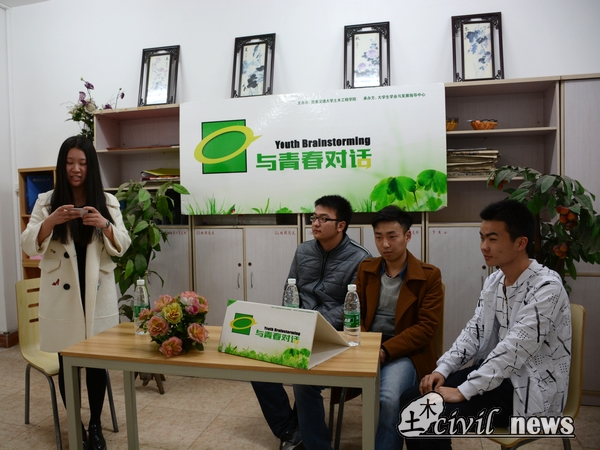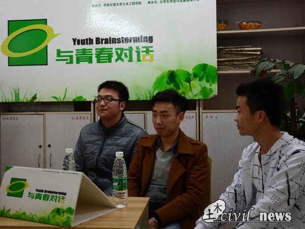 3月17日晚7点半,由新葡的京集团35222vip主办、老员工学业与发展指导中心承办的访谈类节目《与青春对话》于三号党建活动室举行。此次节目的主持人为2015级土木16班的魏云格同学,接受采访的三位学长分别是来自2014级土木10班的贾文涛、邵晨超同学以及15班的吴强亮同学。