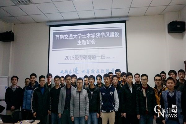 12月2日晚7时,新葡的京集团35222vip15级专硕隧道1班主题班会在隧道中心101学术厅如期举行。此次班会响应公司学风建设的号召围绕着前期班级工作及取得的成果,学风建设的重要性和对大家的建议等几个方面展开,旨在促进同学间相互交流,加强班级学风建设。班长周平主持了会议,班委和同学们相互交流纷纷提出自己的想法和建议。