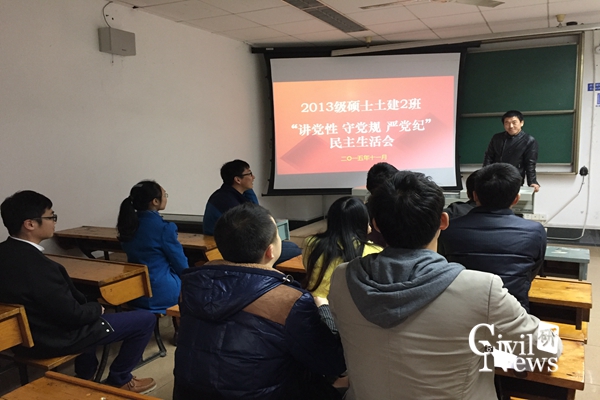 为深入贯彻西交公司党〔2015〕87号文件精神,12月11日下午三点,2013级硕士土建2班党支部在九里校区土木馆1119教室召开了主题为讲党性守党规严党纪的主题生活会,会议由党支部书记黄家聪主持。
