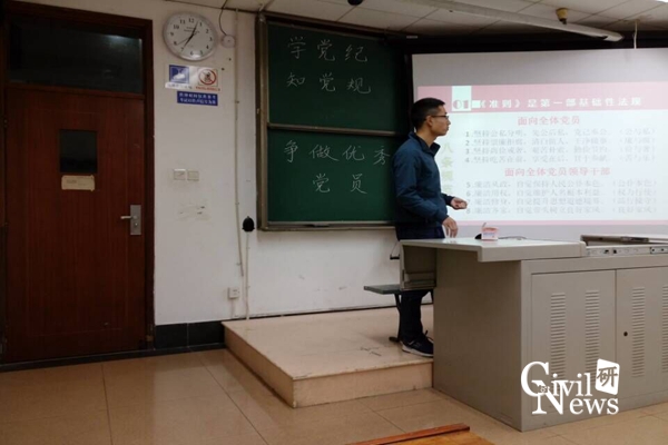 首先,党支书曾前程同学向大家解释了这次学习的重要性和意义,强调这次学习可以了解党组织对党员道德修养与行为准则的要求和规范,争取做到与时俱进的保持党员自身先进性。