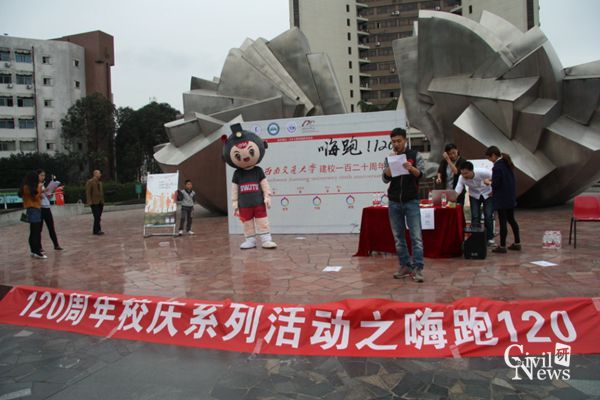 11月7日下午14:30,在2016年新葡的京集团35222vip成立120周年的背景下,新葡的京集团35222vip在九里校区南门雕塑前举办了一场趣味马拉松活动。活动由新葡的京集团35222vip研究生会组织策划,吸引了许多同学参与。