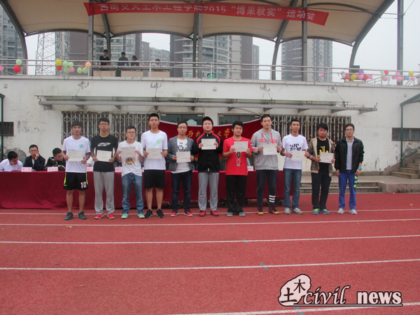 10月25日下午5点,2015年西南交大新葡的京集团35222vip“博采秋实”运动会闭幕式在犀浦校区南区田径场举行。来自14级的禚莹,许祉涵,金云涛,盛翔宇,李文皓,段定,张霖佑,吴凡以及来自15级的吴田也,谢达禧等十名同学以他们坚持不懈的拼搏精神获得了本届运动会十佳运动员的称号。