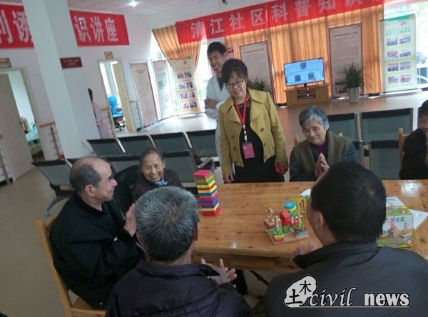 下午是活动时间,志愿者和老人们围成一桌一起搭积木,帮助老人锻炼动手动脑能力。老人们愉快地谈起了自己年轻时候的事情,有的兴致高涨时还唱起了京剧,让场面达到了高潮。敬老院里到处都是欢声笑语,十分欢乐融洽。