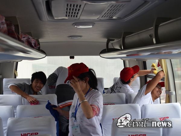 到达目的地后,校车师傅首先为志愿者们讲解了清洗校车的注意事项和要求。随后,大家便分好小组,开始工作。每位志愿者都各尽其职,活动在愉快的氛围下有条不紊地展开着。