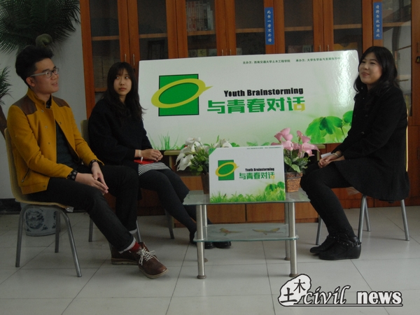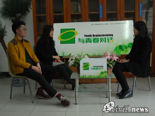 11月6日下午4点,新葡的京集团35222vip的首档青年思想秀——“与青春对话”访谈节目在天佑斋6号楼的党建室开始了。此节目由新葡的京集团35222vip的老员工学业与发展指导中心承办,旨在让优秀的交大学子分享自己独特的老员工活经验与感触。而此次访谈的受邀嘉宾是2012级的杨瑱冉同学和2013级的许晓冬同学,他们因近期在学业上的突飞猛进而备受关注,在下面三十分钟的访谈时间里,主持人孙君将会让两位嘉宾谈谈各自的学习感悟。