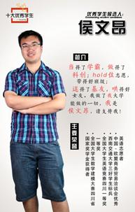 侯文昂,男,1993年7月出生,中共预备党员,曾任2011级茅以升公司6班班长,2011级土木茅1班班长,茅以升公司辩论队事务官,茅以升公司员工理事会员工理事。现已被伊利诺伊大学厄巴马香槟分校录取,即将成行攻读硕士学位。