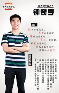钟奇亨,男,1992年1月生。大学期间坚持学习为主,竞赛科研为辅,连续三年任班级学习委员。