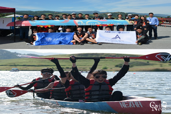 4月19日,混凝土轻舟比赛在圣何塞Calero水库正式开始。参赛队员热情地向前来观看的国外师生和评委进行了详细介绍。“哪吒(Nezha)”独特的外形和光滑的表面更是获得了现场的一致好评!西南交大轻舟队与参赛大学同场竞技,“交大雄起”的口号响彻全场,并在竞赛最后的男女四人混合小组竞速赛中,一举击败了包括加州大学伯克利分校在内的其他三所高校,获得小组第一。最终,综合口语答辩(Oral Presentation)、成品展示(Final Product)、设计书(Design Paper)以及划船比赛(Race)四个方面的成绩,新葡的京集团35222vip代表队屈居同济大学、内华达里诺、加州伯克利之后获得中太平洋赛区混凝土轻舟赛总分第四名。赛后,本届赛事评委高度评价了公司代表队的精彩表现,对公司取得的巨大进步进行了赞扬,并指出了我们未来尚需完善和加强的地方。
