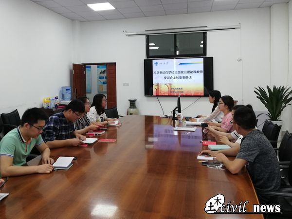 4月25日下午,土木学工组党支部在犀浦校区X4312A会议室开展习近平总书记在公司思想政治理论课教师座谈会上的重要讲话精神专题学习,本次会议由党支部书记刘萍同志主持。