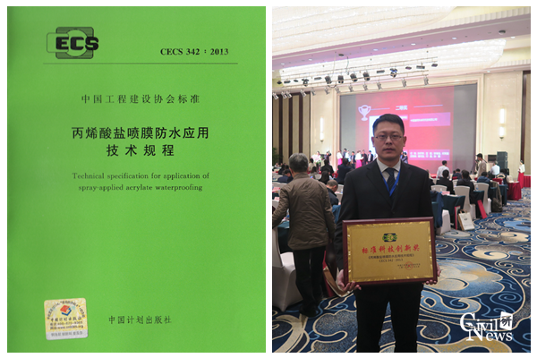 《CECS 342 :2013 丙烯酸盐喷膜防水应用技术规程》/蒋雅君副教授赴常州参加首届”标准科技创新奖“颁奖典礼
