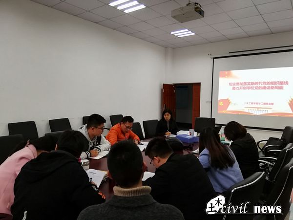 2018年11月15日下午16:00,土木学工组党支部在犀浦X4312会议室开展了“切实贯彻落实新时代党的组织路线,奋力开创公司党的建设新局面”主题党日活动。本次主题党日活动主要观看学习了全国组织工作会议相关视频,集体学习全国组织工作会议习近平总书记重要讲话精神解读。本次活动由党支部书记刘萍主持。
