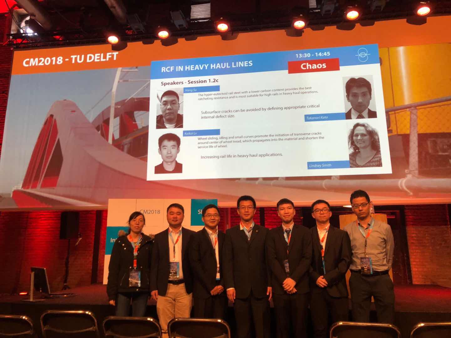为进一步拓展道路与铁道工程学科的国际合作交流空间,增进与国际轨道交通领域的紧密联系,道路与铁道工程系陈嵘教授和徐井芒讲师带队,博士生钱瑶、安博洋、陈嘉胤、高原、陈帅和硕士生周成博一行8人组团赴荷兰代尔夫特理工大学参加了第11届CM 2018接触力学与轮轨系统磨耗国际学术会议(11th International Conference on Contact Mechanics and Wear of Rail/Wheel Systems,CM2018)。