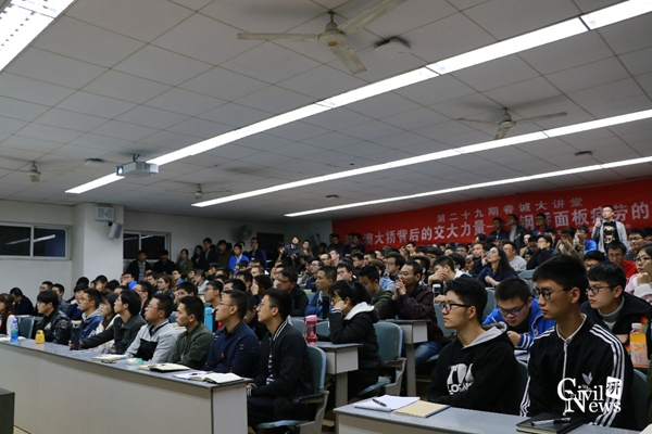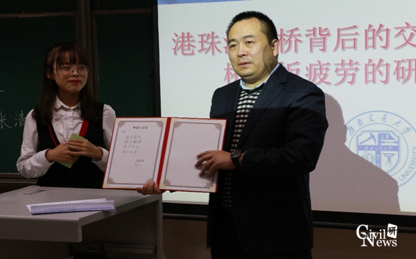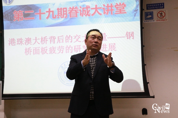 11月6日晚七点半,由共青团新葡的京集团35222vip委员会和新葡的京集团35222vip研究生会主办,新葡的京集团35222vip研究生会承办,桥梁工程系副主任张清华教授主讲的第二十九期眷诚大讲堂在九里校区逸夫楼4408成功展开。此次眷诚大讲堂的主题为“港珠澳大桥背后的交大力量-钢桥面板疲劳的研究及进展”,由樊惠惠同学担任主持。