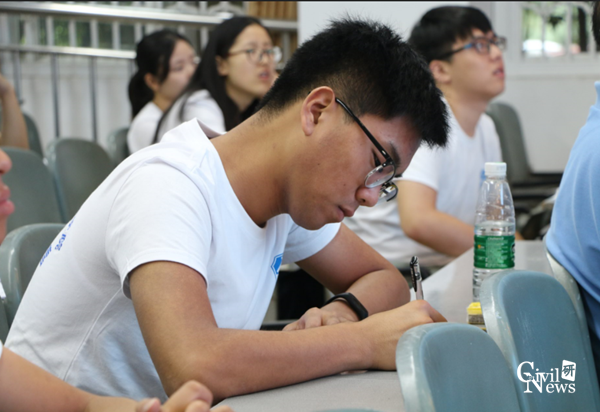 下午14点,全体营员准时聚集在逸夫馆4105进行了学术交流活动,聆听各系室分管研究生工作的副主任讲解各系教学科研的具体情况,包括各系室的研究方向、研究团队、研究成果和获奖情况。同时,来自西南勘察设计院的王新高级工程师就个人在专业提升和工作中的心得与大家进行了分享。全体营员聚精会神,表现出了浓厚的兴趣,讲解结束后纷纷举手提问,问题直击当下研究热点,高手层出不穷,得到在场老师的肯定和细心解答。