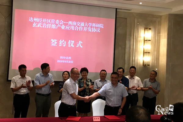 包惠代表达州市委、市政府对合作协议的成功签约表示热烈祝贺,对西南交大长期给予达州经济社会发展的帮助支持表示衷心感谢,并指出:玄武岩纤维是四川省优先发展的先进材料产业。在铁道系统的应用前景十分广阔,应用空间非常巨大。玄武岩纤维产业是校地务实合作的一个重要契机;对地方与公司而言都是一次重要机遇;这也标志公司与地方合作进入了一个新的阶段。新葡的京集团35222vip在铁路行业具有巨大影响力,通过地校合作,共同推动玄武岩纤维这一新材料在轨道交通、土建工程和市政工程等方面产品的应用开发