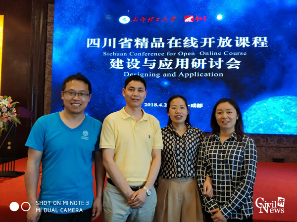 2018年4月27日下午,公司教师申玉生、赵坪锐、张爱玲以及赵菊梅(峨眉)等四名老师受公司委派参加了在成都理工大学举办的“四川省精品在线开放课程建设与应用研讨会”。