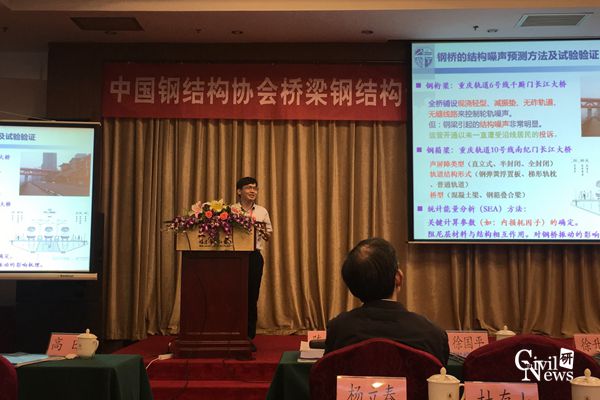 19日上午举行了大会开幕式。中国钢结构协会秘书长侯兆新、桥梁钢结构分会理事长刘晓光等领导先后发言,对各位与会专家、代表的莅临表示热烈的欢迎。开幕式结束后,进行了大会报告交流。我系郑凯锋教授主持了19日上午的大会报告。会议期间共有16位专家做了大会报告和技术交流,反映了近两年来我国钢桥设计、建造技术的新进展、新成果、新观点。19日下午,我系李小珍教授作了题为“轨道交通钢桁梁斜拉桥的车致振动与减振降噪研究”的技术交流大会报告,介绍了李小珍教授团队在该领域研究的最新研究进展。20日下午,大会组织与会代表参观了正在建设中的平潭海峡公铁两用大桥。