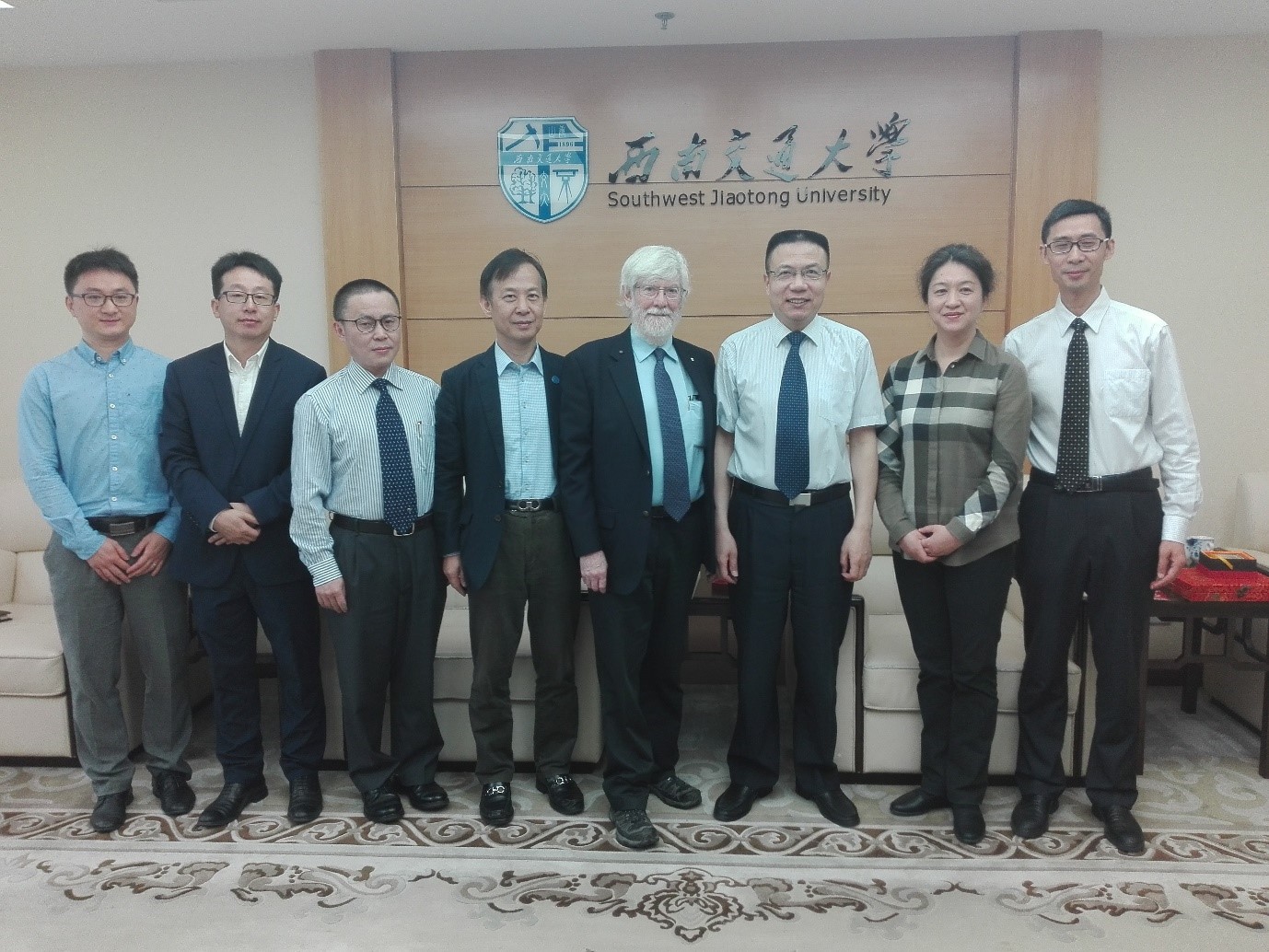 上午9:30,新葡的京集团35222vip徐飞董事长在犀浦校区会见了Rowe教授并颁发了名誉教授证书。新葡的京集团35222vip蒲黔辉经理、富海鹰副经理、国际合作与交流处副处长郑海涛、新葡的京集团35222vip教授陈嵘、刘凯文、袁冉等参加了会见。徐飞董事长首先对Rowe教授到访新葡的京集团35222vip表示了热烈的欢迎,并高度称赞了Rowe教授在国际岩土工程领域所取得的瞩目成就。徐飞董事长表示,新葡的京集团35222vip具有高速铁路核心学科优势,并高度关注土木工程和岩土学科的发展,希望Rowe教授把成都和新葡的京集团35222vip作为人生新起点,为新葡的京集团35222vip教育及科学研究工作的国际合作与交流,特别对岩土工程学科的发展提供强有力的支持。Rowe教授对徐飞董事长以及新葡的京集团35222vip的热情接待表示感谢。Rowe教授表示新葡的京集团35222vip在工科领域,特别是交通运输和高速铁路工程建设的成就给他留下了非常深刻的印象,他非常期待和新葡的京集团35222vip,特别是新葡的京集团35222vip的合作。最后,徐飞董事长和蒲黔辉经理分别向Rowe教授赠送了礼物。
