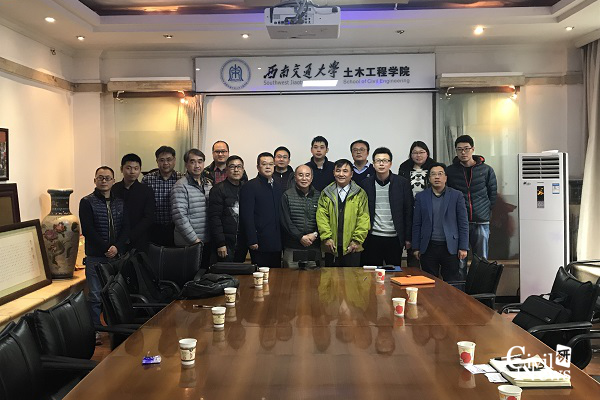 2018 年1月27日下午14时30分,香港理工大学土木工程系黄玉龙教授,国家轨道电气化与自动化工程技术研究中心(香港分中心)研究技术主任韦大同博士,香港城市大学材料科学及工程学系顾问委员会顾问、香港工程师学会资深会员及材料分布名誉秘书、香港混凝土学会资深会员杨世杰博士,香港安全意外及失效分析顾问有限公司首席顾问林超雄博士一行,以及成都东蓝星科技发展有限公司刘自力总经理、陈剑副总经理、季孝敬副总经理等土木工程同行应邀来公司开展学术交流。会议由新葡的京集团35222vip经理助理占玉林副教授主持,建筑材料教研室主任叶跃忠教授、隧道工程系主任晏启祥教授、道路与铁道工程系副主任杨荣山教授、新葡的京集团35222vip王士民副教授、徐腾飞副教授、崔圣爱副教授、李福海高级工程师以及公司科研秘书许浒老师参加了此次会议。