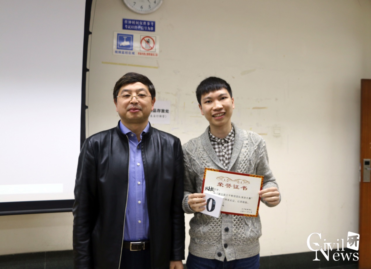 经过一番激烈的较量,决赛持续到下午五点。各位评委老师对比赛进行了总结,铁二院的各位评委嘉宾表扬了各位参赛选手PPT的制作技巧及个人演讲表现,并结合工作实际指出其中的缺点和不足。王平教授对各位参赛选手认真积极对待比赛地态度以及提升自我做出的努力给予极大的肯定,同时指出在PPT制作技巧及演讲者自我表达能力等方面仍然需要不断地努力和改进,希望每一位研究生要不断去完善自我,提升自我,精益求精。最后,王平教授宣布此次比赛结果:一等奖获得者为李朋、杨翠平;二等奖获得者为:汪鑫、王丰、温静、王刘翀、赵泽明;三等奖获得者为韦安祺、王沂峰、刘冬娅、李少铮、李晨钟、欧灵畅、高天赐、于浩。王平教授对获奖同学表示祝贺,希望他们再接再厉,在研究生的学习中也能追求卓越、突破自我。最后为比赛组长陈嘉胤颁发“特殊贡献奖”,以表彰他在此次比赛指导师弟师妹PPT制作技巧及演讲方式中所做出的努力。