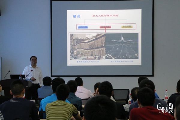 首先,姚教授简要介绍了土力学的相关知识,并形象地将正常固结土比作我们平时吃的豆腐,将超固结土比作豆腐干,既形象,又贴切。在谈到自己对土的本构关系的理解时,姚教授认为,建立土的弹塑性模型,可归结为寻找屈服函数和硬化参数。由于土的本构关系的复杂性,他强调目前研究土的本构模型的主流方法还是基于弹塑性理论。