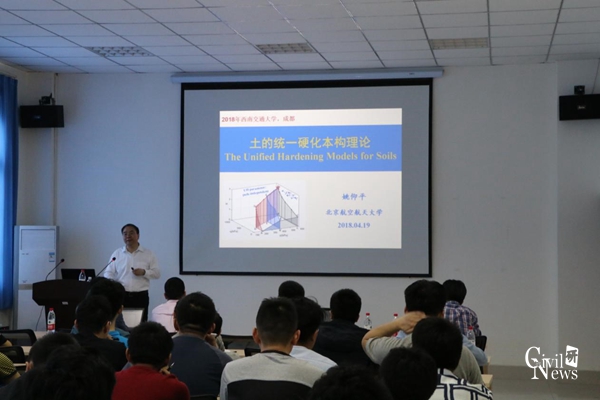 4月19日上午十点,北京航空航天大学姚仰平教授在公司九里校区隧道楼101报告厅进行了题为土的统一硬化本构模型的学术讲座。讲座由新葡的京集团35222vip道路与铁道工程系蒋关鲁教授主持,新葡的京集团35222vip部分老师和同学参加了此次讲座。