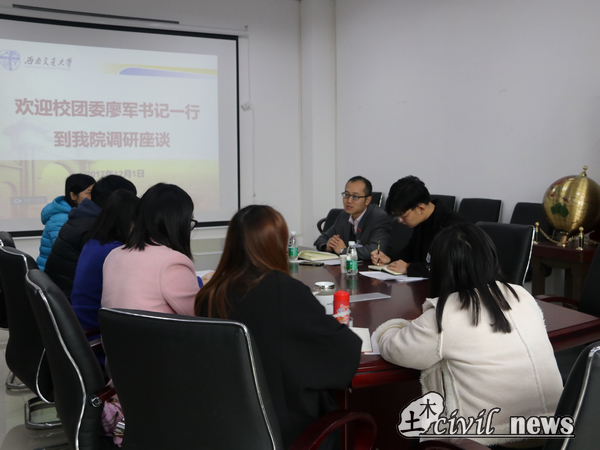 12月1日上午10:30,校团委与新葡的京集团35222vip分团委调研交流座谈会于犀浦校区X4312会议室如期举行。与会人员有:校团委书记廖军、校团委兼职副书记陈景适,新葡的京集团35222vip分团委书记刘萍、分团委副书记付真珍、分团委副书记黄雪娇、青年志愿者协会指导老师向京华、员工运动健康促进中心指导老师代镇洋、员工文化发展中心指导老师张素子。