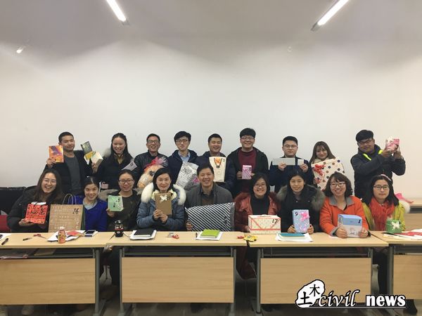 下午4:30,土木学工组进行了“2018,守护神降临!”新年礼物交换和祝福活动。学工组每一位老师互赠新年礼物,向对方说出新年祝福,许下新年愿望并为对方的新年愿望做出守护承诺。