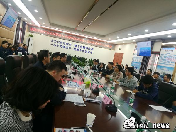 在项目部用过午餐后,企业组织同学们参观了项目营地的情况,并开展了座谈交流会。出席座谈交流会的有水电七局人力资源部主任黄永成、人力资源部员工管理处处长王瑶、团委书记罗程以及成都轨道交通分公司副总经理周鸿源(西南交大99级员工)。在提问环节中领导们对同学们提出的各个方面问题一一耐心解答。黄永成主任表示,在“一带一路”的国际形势大环境下,中国产业更要积极参与国际竞争,紧跟中央方向,在国际上创立特色品牌。公司现已开展大量的多边合作,与巴基斯坦,马来西亚的跨国工程合作,未来还将开展更丰富的国内外合作项目,在中央的号召下建设为更高更强的企业。谈到公司的起源、转型与发展,领导表示,中国水利水电第七工程局有限公司是由水电起家,在发展的过程中保持原有优势特色,同时逐步向基础设施、轨道交通、建筑行业等转型,在建工程中40%为水电项目,60%为铁路、地铁、公路、房建、市政、河道整治等工程项目,国内外现有的建设项目合同就有180多个。随后企业方就员工培养与发展、企业薪酬福利、业余文化活动等方面进行了耐心的解答。会议的最后,黄雪娇老师对中国水利水电第七工程局有限公司能提供这样一个平台表示感谢,希望在接下能够加强校企合作,实现校企双赢。