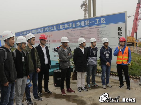第二站师生一行抵达中国水利水电第七工程局有限公司成都轨道交通18号线工程土建二标项目经理部,了解地铁18号线工程、土建2标工程概况及营地的标准化建设、扬尘治理特色、安全活动,并在安全员的带领下下井参观盾构机的实际工作。