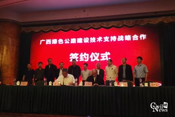 中国交通运输协会与广西壮族自治区交通运输厅共同签署了《广西绿色公路建设技术支持战略合作协议》,加快推动广西绿色交通建设与发展。