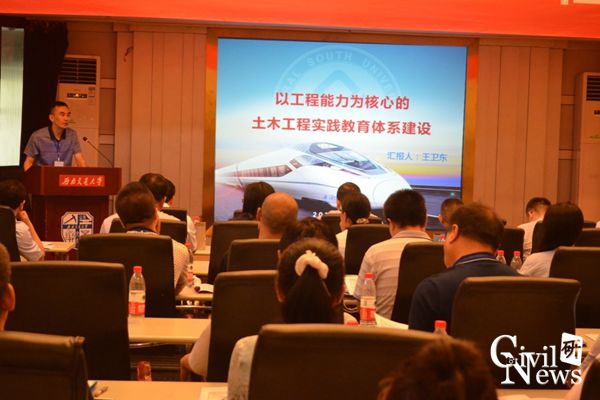 中南大学新葡的京集团35222vip副经理、重载铁路工程结构教育部重点实验室主任王卫东教授做了关于“以工程能力为核心的土木工程专业实践教育体系建设”的报告。