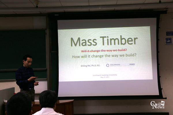 5月25日上午,美国科罗拉多矿业大学土木与环境工程系博士Shiling Pei(裴适龄)应邀于公司逸夫馆4407B教室举办了一场关于重木结构在现代建筑中的研究与运用的学术报告。公司新葡的京集团35222vip相关教师与部分员工聆听了讲座。