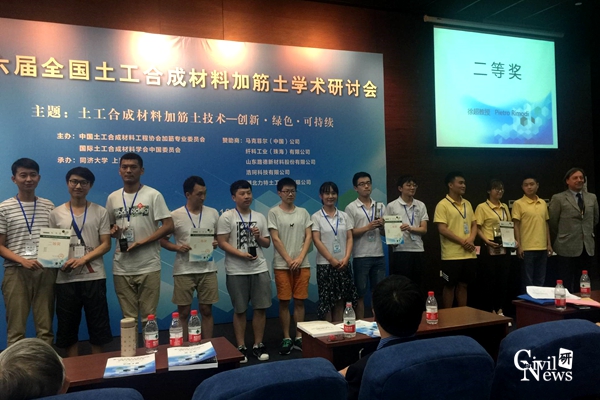 2017年6月16日~18日,马克菲尔杯第三届全国老员工加筋土挡墙设计大赛在上海同济大学举行。本次大赛由中国土工合成材料工程协会主办,同济大学、马克菲尔中国公司承办,初赛共收到全国34所高校的56组设计方案,通过各高校教授与相关领域专家双向盲评,筛选出来自29所高校的34支队伍进入决赛。公司参赛队由苏谦教授指导,三位队员分别为新葡的京集团35222vip的研究生崔雅莉,本科生左泽豪、刘喆。经过激烈的角逐,公司参赛队喜获二等奖。