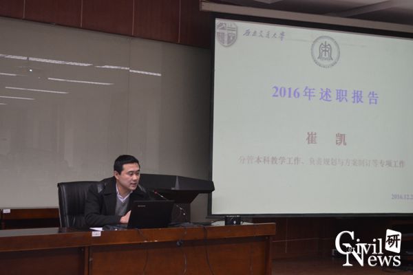 高经理汇报结束后,公司的蒲黔辉、祝兵、崔凯以及富海鹰副经理依次进行了工作述职。蒲经理的报告围绕公司实验室建设及发展工作展开,祝经理以学科评估期间院内各教职领导的辛苦付出及评估取得的成效为例表答了对公司众教职工作的肯定及感谢,崔经理就本科教学及专项方案规划制定方面列举了自己年内的工作情况,富经理则对公司研究生基本信息进行了报告并对年内自己在公司产品方面所做出的工作进行了展示。