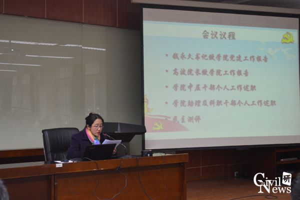 12月22日下午,新葡的京集团35222vip在九里校区逸夫楼举行了2016年基层党建考核暨中层领导干部年度考核大会。大会应党委组织部要求对中层、助理及科职领导干部进行了年度考核。会议由李彤梅副书记主持。会上,各领导干部将自己全年的工作情况进行了汇报,并指出了各自工作存在的不足以及对未来工作的规划,全院在职在岗教职工参加了该会议并参与了民主测评环节。本次会议期间还穿插了钱永久书记、李锦红副书记以及李彤梅副书记的换届考察测评。