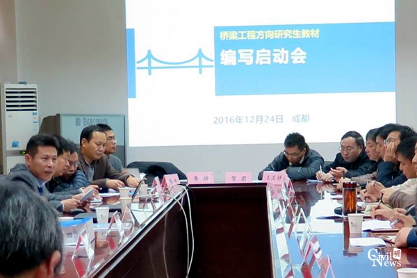 2016年12月24日,由人民交通出版社主办、桥梁工程系承办的“桥梁工程专业研究生教材”编写启动会在公司土木馆召开。来自公司与人民交通出版社、同济大学、重庆交通大学、东南大学、浙江大学、湖南大学、北京交通大学、河海大学、长安大学、武汉理工大学、福州大学、长沙理工大学、东北林业大学以及中交第一公路勘察设计研究院的教授、专家、学者近30人汇聚一堂,就“钢与组合结构桥梁理论”、“桥梁结构试验”与“桥梁有限元分析”(暂定名)三本桥梁专业研究生教材的编写进行磋商。