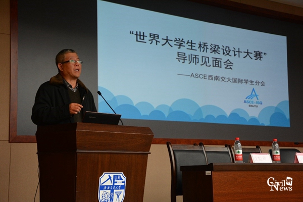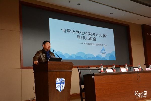 2017年1月10日9:00,由新葡的京集团35222vip桥梁工程系、美国土木工程师公司新葡的京集团35222vip国际员工分会(ASCEISG-SWJTU)主办的世界老员工桥梁设计大赛新葡的京集团35222vip导师见面会于犀浦校区综合楼148第七会议室顺利举行,来自新葡的京集团35222vip的郑凯锋、李亚东、沈锐利、栗怀广老师,建筑与设计公司的徐伯初、舒波、李百毅、黄媛老师分别为与会的本科生、研究生进行分享与交流。新葡的京集团35222vip崔凯副经理也莅临进行了指导。