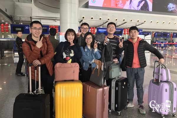 研修生在双流机场出发