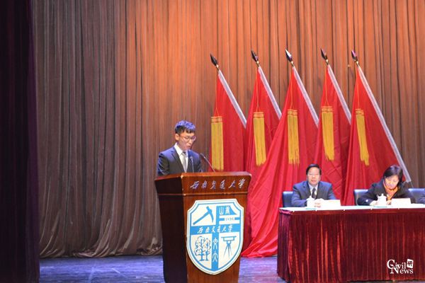 2013级本科生陈坤作为员工党员代表发言