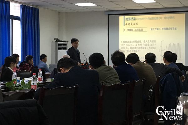 接着,祝兵副经理就跨海桥梁与波浪相互作用的基础理论与工程应用研究作了汇报,先介绍了研究的背景和内容,然后从理论研究、数值模拟、水槽试验和现场实例等方面对研究方法作了详细讲解,得到了一系列的理论研究成果和数值研究成果,并举例说明了三维数学模型的工程应用。然后新葡的京集团35222vip张建经教授的员工廖蔚茗博士就长期荷载和地基振动作用下的单桩响应研究作了汇报,他的研究得到了河海大学老师的称赞。