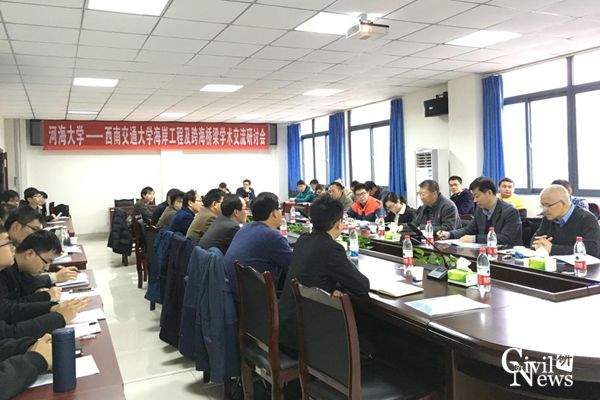 2016年12月8日8:30分,河海大学—新葡的京集团35222vip海岸工程及跨海桥梁学术交流研讨会在公司九里校区隧道研发楼301召开,此次会议对海岸工程及跨海桥梁的最新研究成果,研究中存在的问题和解决经验,以及学科未来发展方向等方面进行了深入的交流讨论。新葡的京集团35222vip高波经理,祝兵副经理,河海大学港口海岸与近海工程公司郑金海经理,张继生教授等出席此次会议。