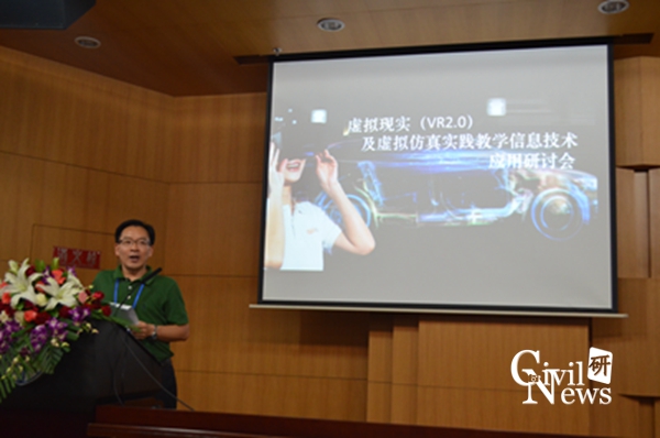2016年6月17日下午1点30分,在新葡的京集团35222vip犀浦校区图书馆一楼二号报告厅召开了以“虚拟仿真实践教学的现状与发展、虚拟现实产业链的技术发展与应用”为主题的首届虚拟现实(VR2.0)及虚拟仿真实践教学信息技术应用研讨会。会议的宗旨在于应用最新虚拟仿真技术,推进前沿教学手段和方法的改革创新;加强仿真实验教学条件建设,提高人才培养质量。