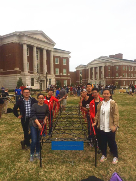 美国中部时间2016年3月11日至13日,ASCE(美国土木工程师协会)东南赛区结构设计竞赛在阿拉巴马大学举行。共计20余所大学代表队参加该赛区的竞赛,新葡的京集团35222vip作为田纳西大学的邀请队首次参加该项赛事中的钢桥比赛,是国内仅有的四所(同济、东南、浙大、西南交大)参加此项竞赛的高校之一。本次参赛在新葡的京集团35222vip高波经理、崔凯副经理、桥梁工程系李亚东主任等的精心组织下,公司组建了占玉林副教授、何畏副教授、张锐老师、栗怀广老师任指导老师的指导小组。并于3月份派出了由张锐老师任领队,肖林老师任副领队,董佳慧、祝泽晖、张乾、孙朝阳、葛良福、韩嘉怡等6名本科生作为正式参赛队员的参赛队伍。公司参赛队伍顺利通过展示、现场拼装、尺寸检验、称重、侧向加载、垂直加载、挠度测定等环节,凭借独特的造型和节点设计以及默契的拼装配合夺得众多美国高校的关注及好评。公司由于首次作为邀请队参赛,不参与最终评奖。