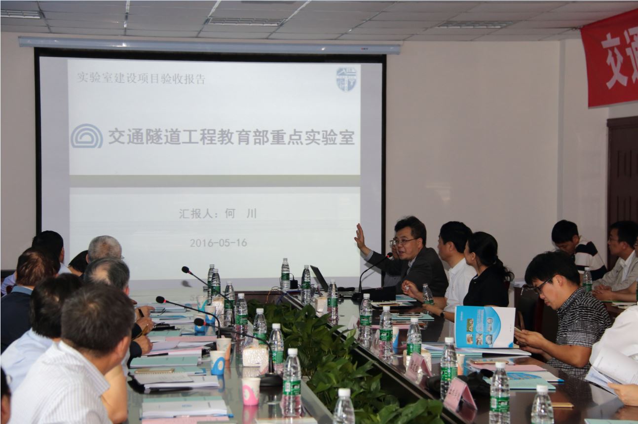2016年5月16日,教育部科技司在新葡的京集团35222vip组织专家对交通隧道工程教育部重点实验室进行了建设验收。出席会议的专家和领导有北京交通大学王梦恕院士、中国人民解放军61489部队任辉启院士、中铁西南科学研究院王建宇研究员、四川大学许唯临教授、同济大学黄茂松教授、成都理工大学许强教授、长安大学陈建勋教授,以及教育部科教司基础处黄伟华副处长。新葡的京集团35222vip张文桂副董事长、新葡的京集团35222vip高波经理、科研院刘朝晖副经理以及实验室全体研究人员和专职实验人员参加了会议。