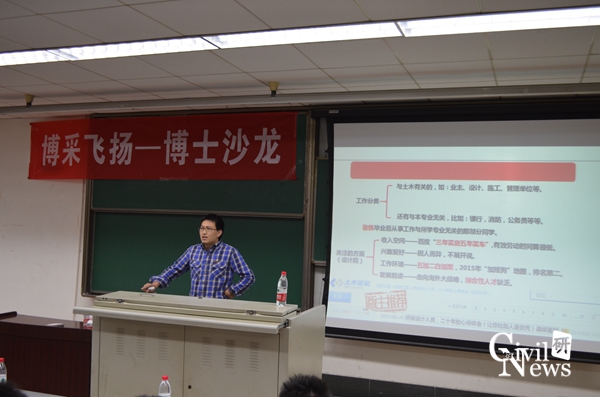 随后王森荣博士针对设计院的人才需求做了演讲,他同样强调了解行业整体形势的重要性,并介绍了铁路的当前及今后的发展趋势。紧接着他讲解了设计院所需的各类人才,如技术人才,科研人才,建造管理人才等,而设计院的当前情况是既有生产任务也有技术研究任务。作为中铁第四勘察设计院线站处轨道所副所长,王森荣博士同时介绍了铁四院轨道所的业务范围。最后王森荣博士对在座的研究生及博士生提出几点建议:多参加竞赛;多参加学术报告交流;多做笔记;多看论文;多沟通多交流;多实践多思考。
